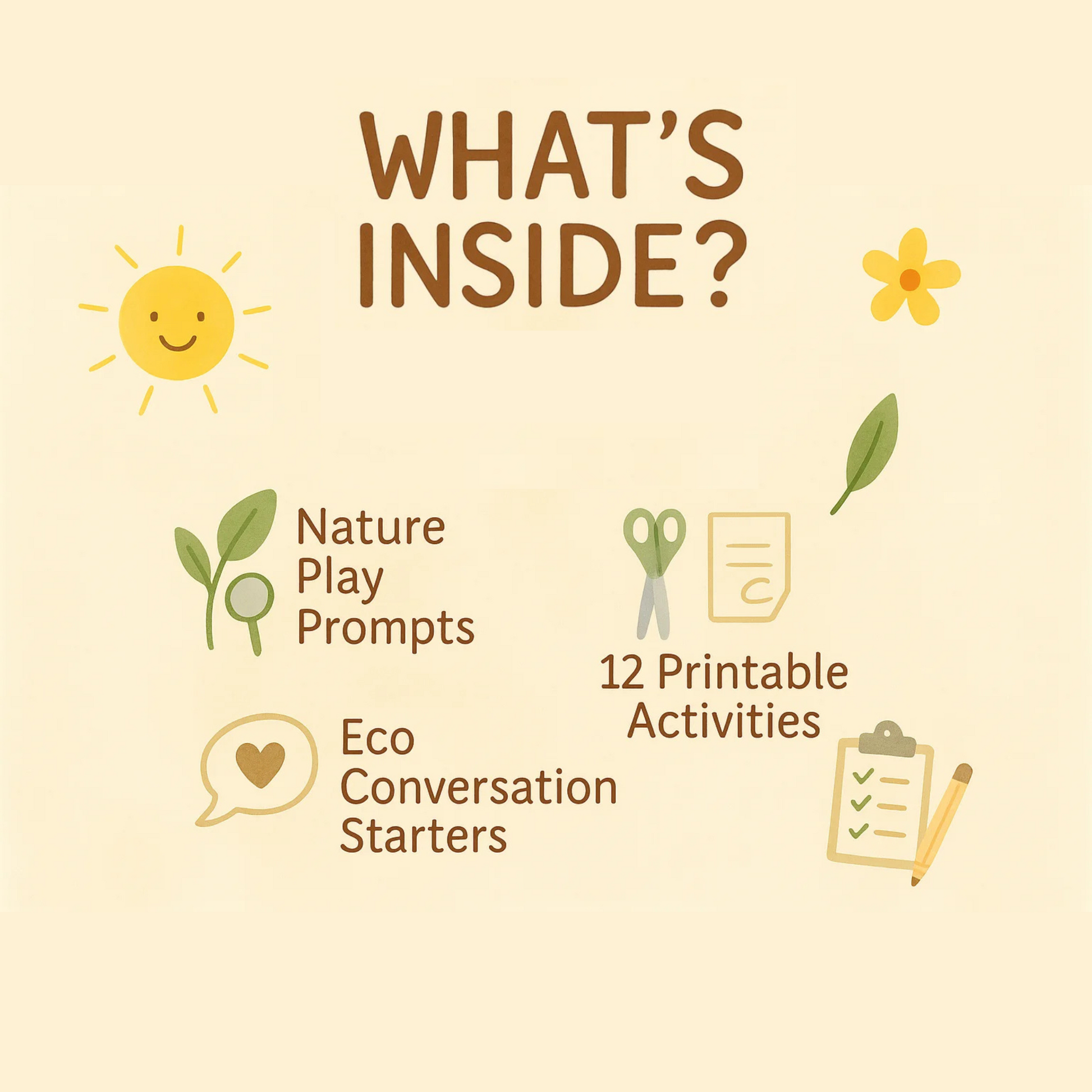 The Eco Explorers Kit is filled with hands-on, screen-free nature activities, gentle conversation prompts, and simple setup tips.It’s designed to help young children connect with the environment through joyful, nature-inspired play, making big ideas like sustainability, empathy, and creativity fun and accessible.